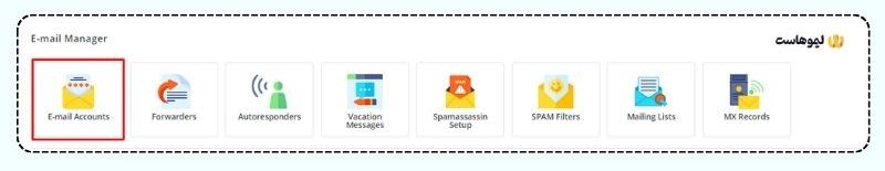 بعد از وارد شدن به کنترلپنل، از بخش E-mail Manager روی گزینه E-mail Accounts کلیک کنید.