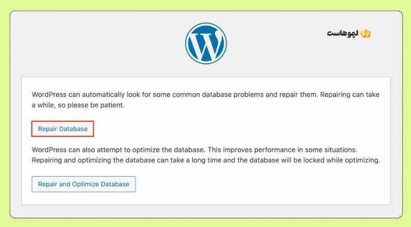 • در مرورگر به آدرس زیر بروید (آدرس سایت خود را جایگزین کنید): http://your-site-domain.com/wp-admin/maint/repair.php