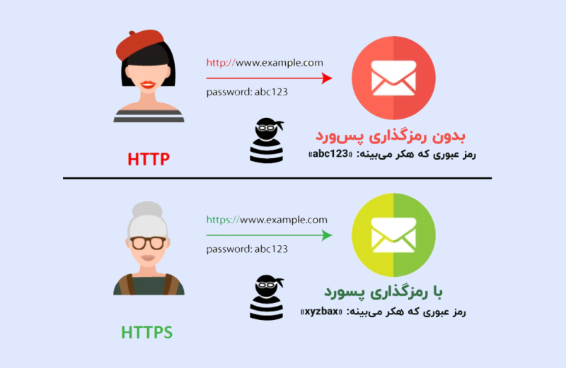 📌💡 مروری بر تعریف گواهینامه SSLSSL یا نسخۀ پیشرفتهتر آن یعنی TLS، پروتکل ارتباطی HTTP را به نسخۀ ایمن آن، یعنی HTTTPS، تبدیل میکند؛ در نتیجۀ این کار، دادههای ردوبدلی بین کلاینت و سرور رمزنگاری میشوند؛ این یعنی اگر کسی در بین راه به اطلاعات دسترسی پیدا کند، نمیتواند محتویات را ببیند و تغییری در آنها به وجود بیاورد. برای کسب اطلاعات بیشتر مقالۀ «گواهی SSL چیست و چه کاربردی دارد؟» را بخوانید. |