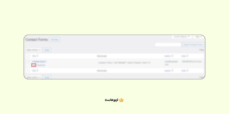 بعد از وارد شدن به داشبورد وردپرس، از منوی سمت چپ روی Contact بروید و بعد گزینۀ Contact Forms را انتخاب کنید؛ بعد روی Edit که زیر نام فرم مد نظر میبینید کلیک کنید: